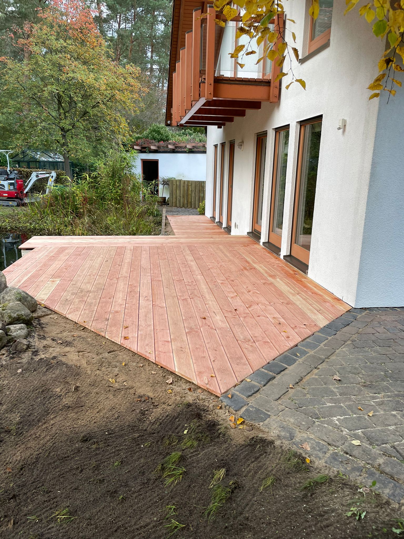 Ob frisch verlegter Rollrasen, moderne Terrassen oder Zäune aus Holz und Metall: Wir gestalten Ihre Außenanlage ganz nach Ihren Wünschen. Als Ihr Partner für Gartenbau und Landschaftspflege sind wir in Gifhorn, Wolfsburg und Braunschweig für Sie im Einsatz.